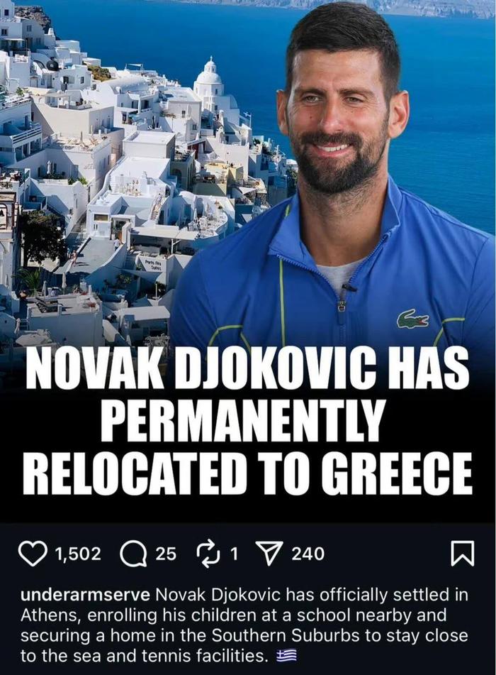 据知情人士透露,德约科维奇选择希腊作为新家园有多重考量,其中教育质量是重要因素之一。