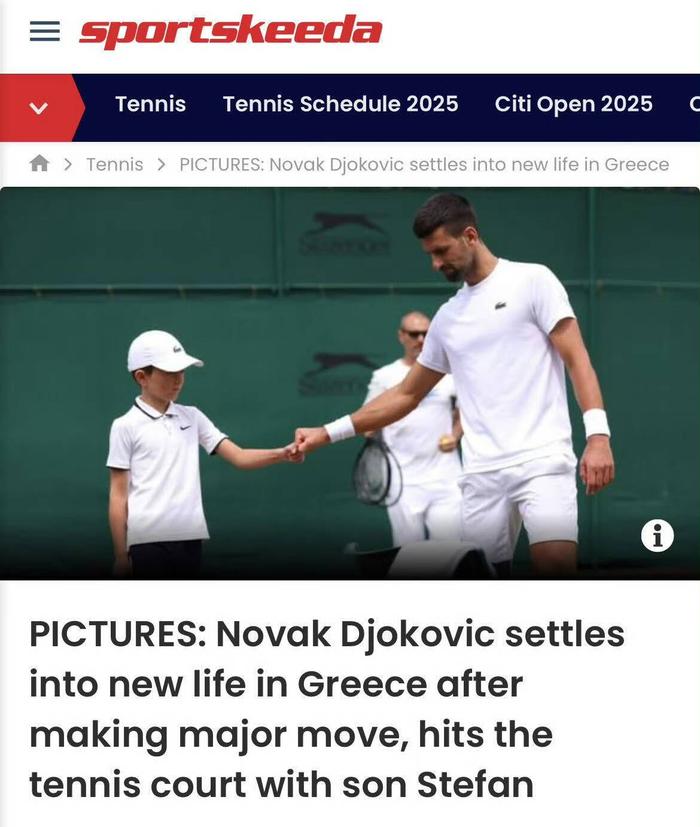 近日,根据希腊媒体的消息,德约科维奇已正式落户雅典南郊格利法达地区,其子女即将入读当地学校,这位24届大满贯冠军得主也在积极适应希腊的新生活。